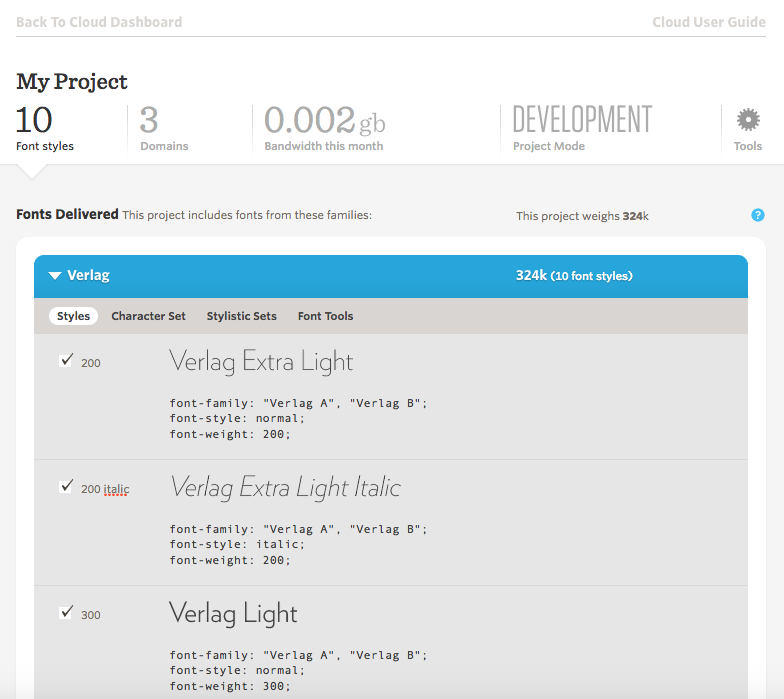 Once you've chosen your fonts and paid for your Cloud.Typography license or licenses, you need to create a ‘project' for your website.